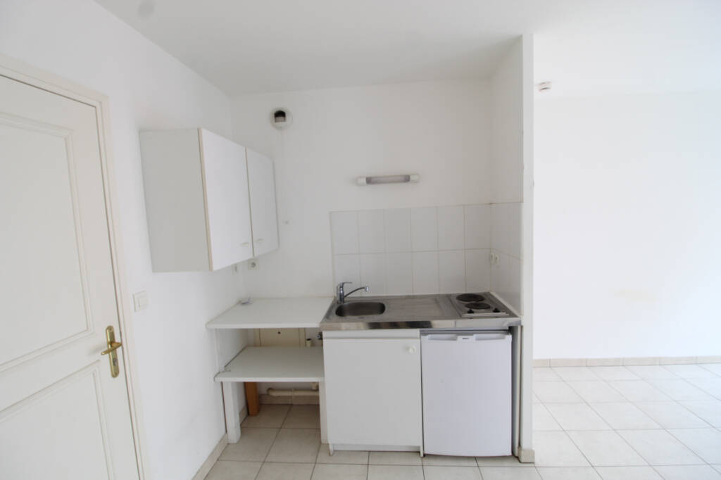 Lille Vauban/ Wazemmes rue Deschodt, Appartement Studio à louer avec parking proche des commerces, des transports et des universités: offrant un hall d'entrée, une salle de séjour avec coin cuisine aménagé (réfrigérateur, plaques de cuisson), un placard de rangements et une salle de bains (douche, meuble vasque, WC)