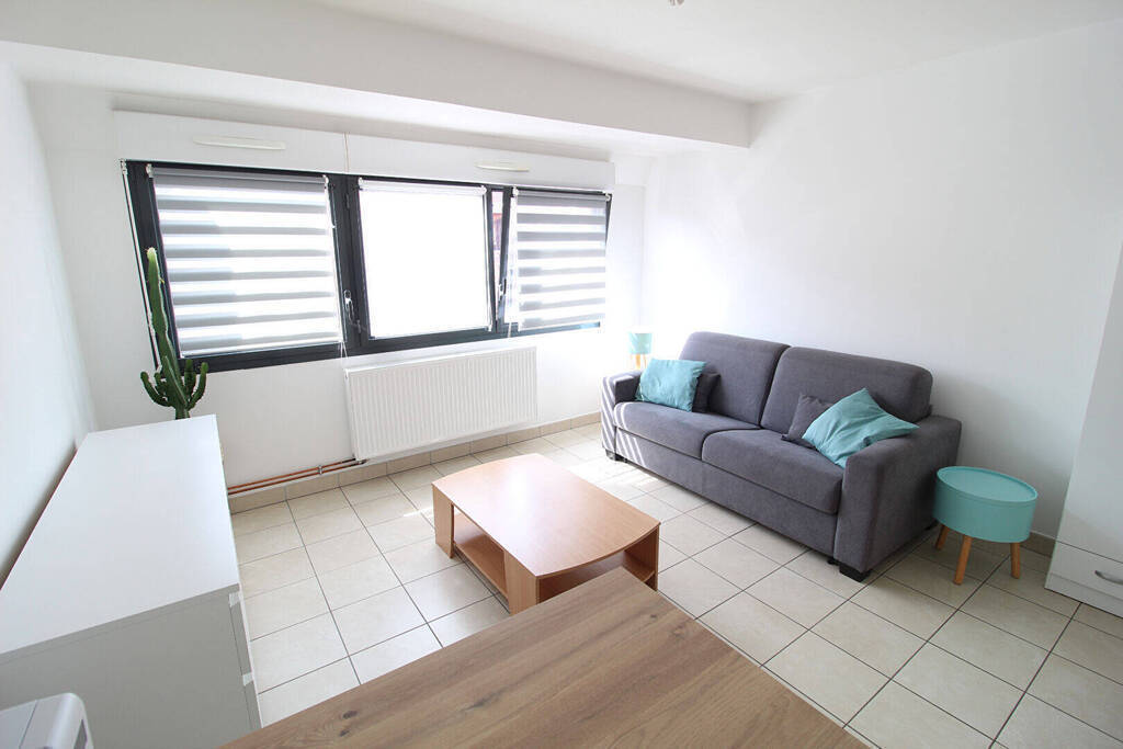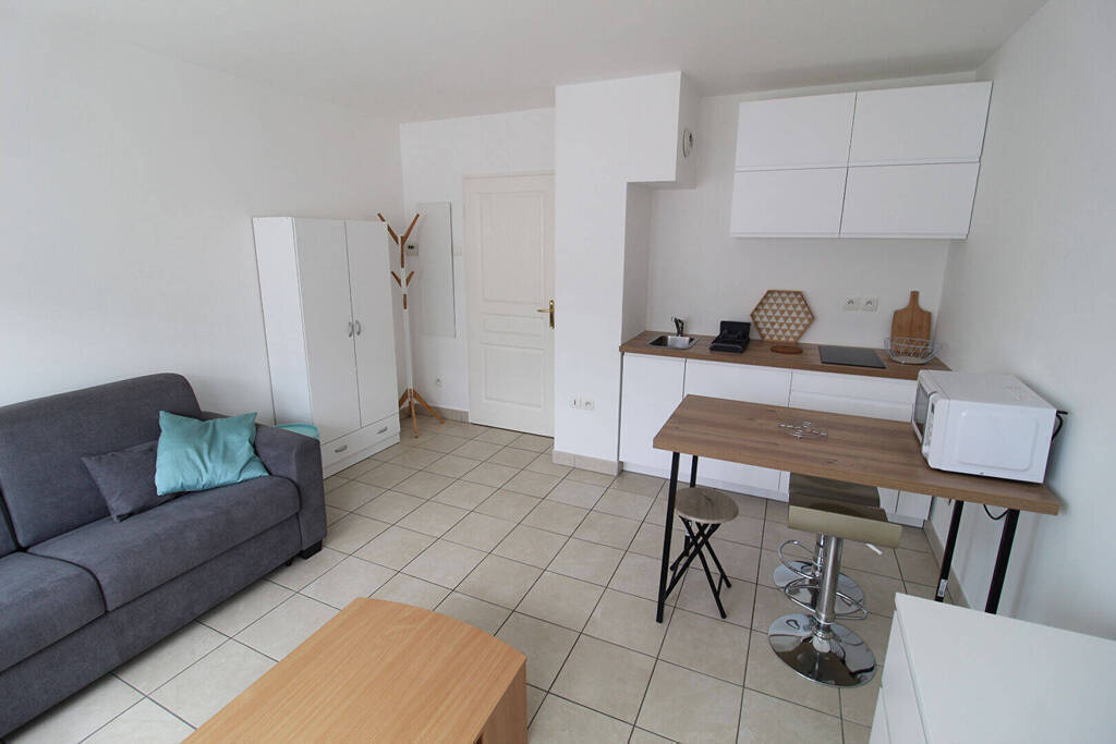 LILLE SOFERINO/REPUBLIQUE, rue Ernest Deconynck, studio entièrement meublé à louer avec cave. Il vous offre: un hall d'entrée avec placard, séjour avec cuisine équipée (Éléments de rangement, plaques de cuisson, réfrigérateur, micro-ondes), salle de douche. Disponible le 28 février.