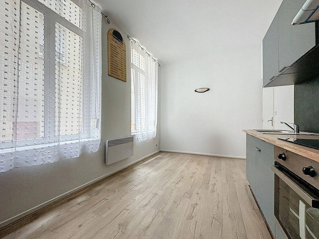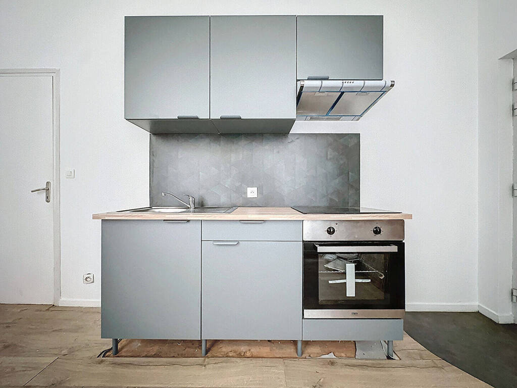 Lille République Beaux Arts, rue Gauthier de Châtillon, Appartement Studio A louer en rez de chaussée offrant une entrée, une pièce principale, une cuisine équipée (four plaques éléments de rangement), une salle de douches avec WC.
