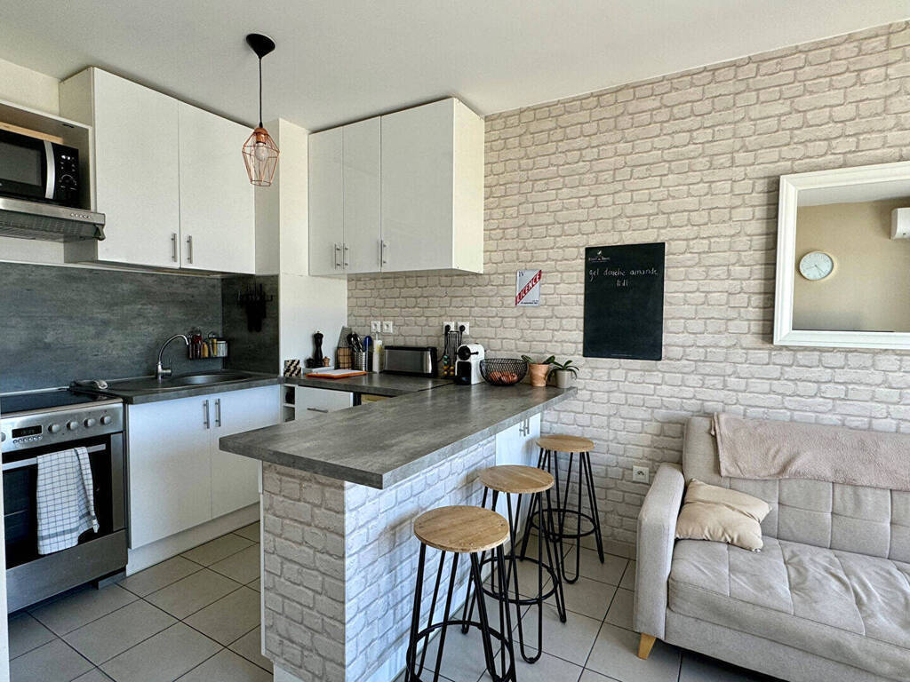 Il est composé d'une entrée, une belle pièce de vie très lumineuse avec une cuisine aménagée et équipée, une chambre, une salle d'eau et une belle terrasse.