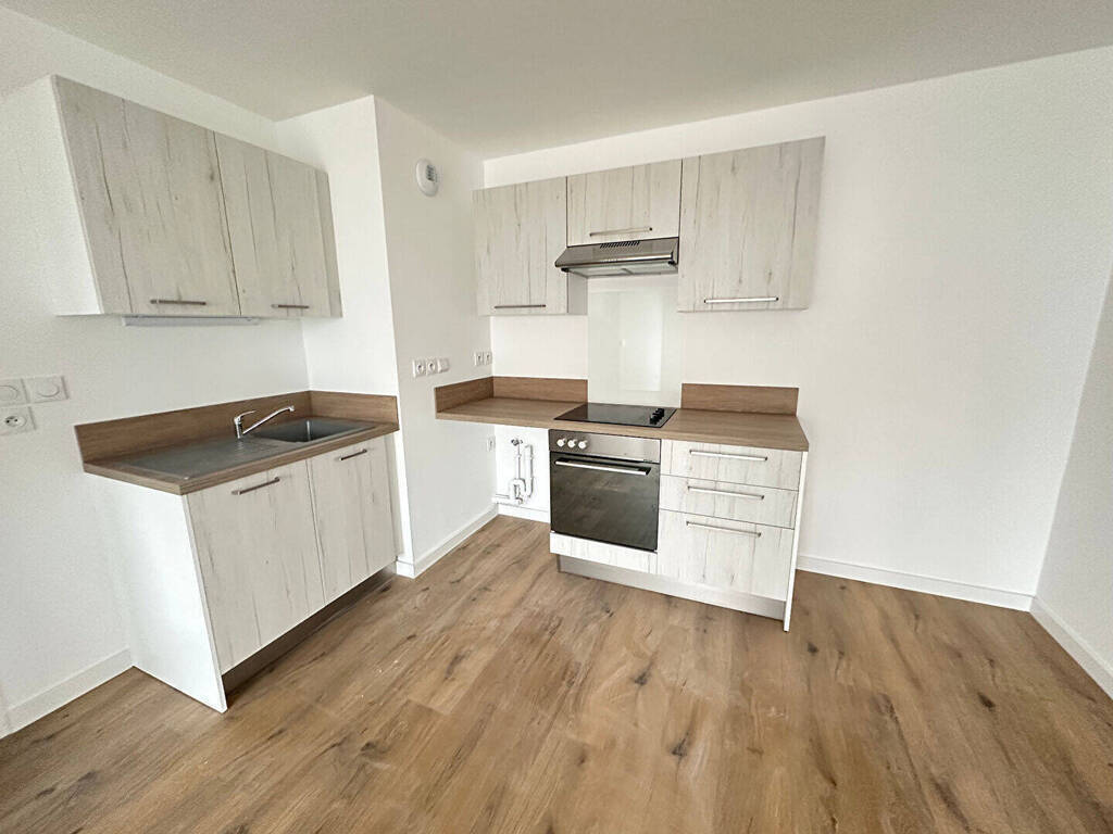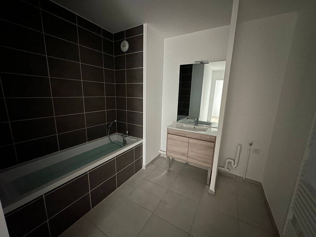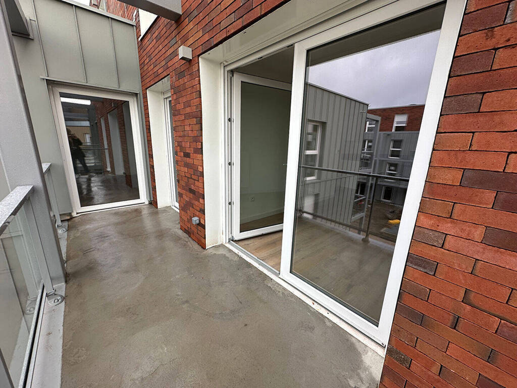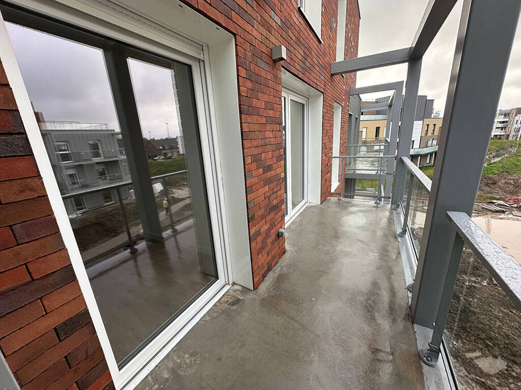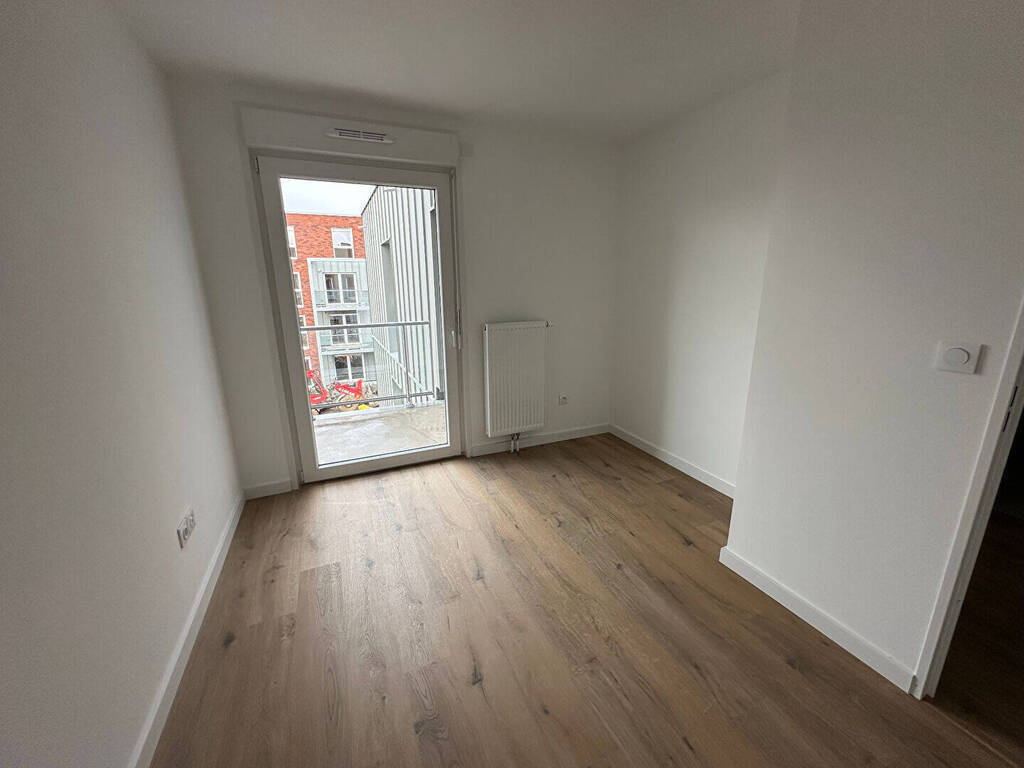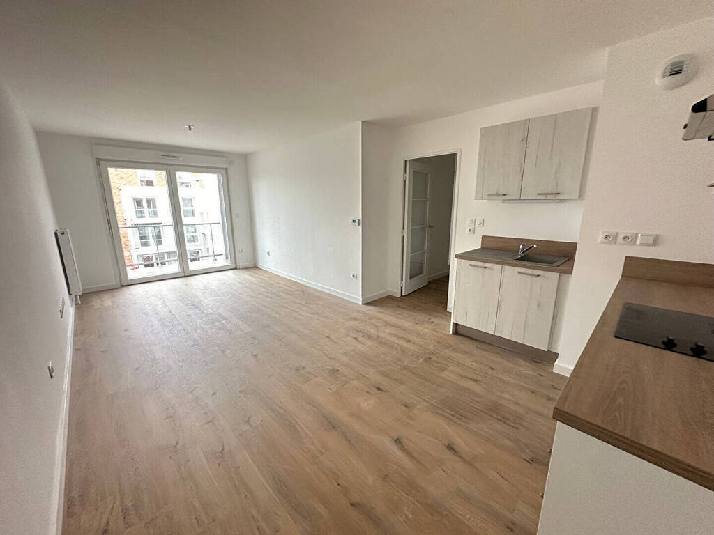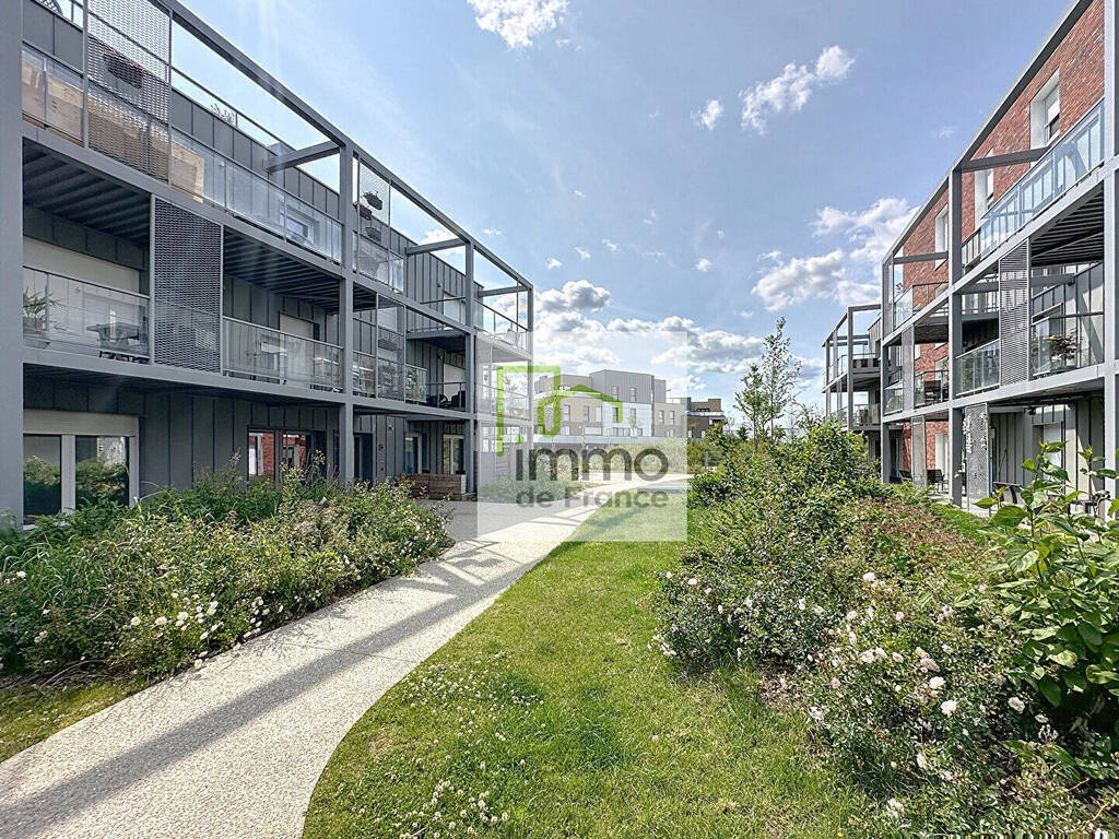Annonce 2844- Contacter IMMO DE FRANCE Charlotte Masse au 07.64.86.84.14- Lesquin, rue Simone de Beauvoir, A louer appartement type 3 neuf de 66m² offrant un hall d'entrée avec placard, WC séparés, un séjour avec cuisine ouverte équipée donnant sur un balcon, deux chambres, une salle de bains, WC séparés- Loué avec parking sous sol- Disponible le 15 Mai -** LOI PINEL **