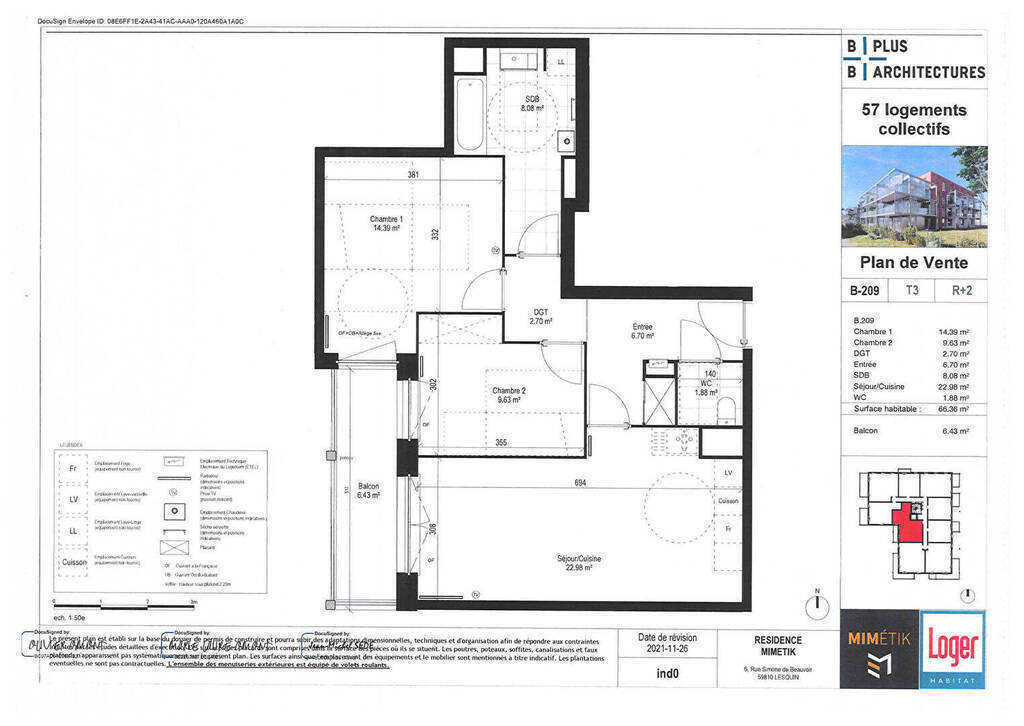 Surface habitable : 66.36 m²