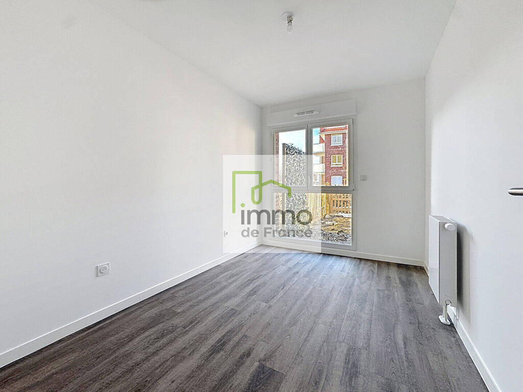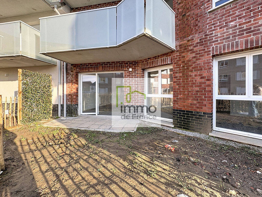 Linselles, rue de la vignette, A louer logement neuf offrant un hall d'entrée avec placard, un séjour avec cuisine aménagée donnant sur une terrasse de 5m² avec un petit jardin privatif de 21m² , deux chambres , une salle d'eau, WC séparés, un cellier- Loué avec deux parkings - Disponible de suite.