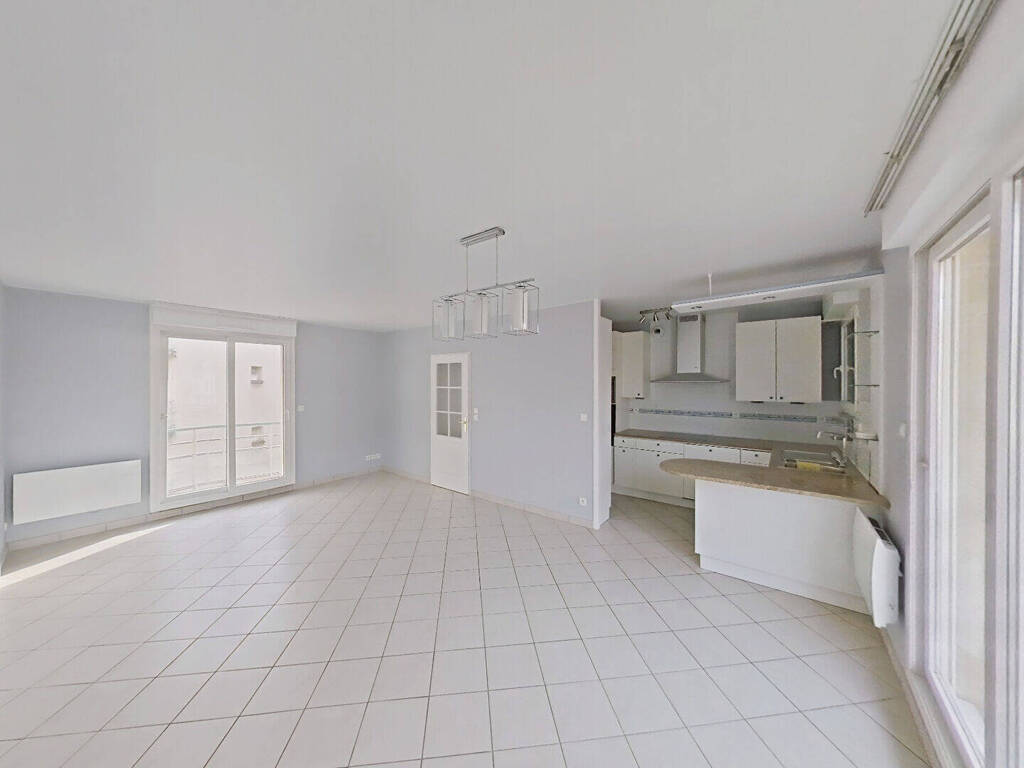 Appartement comprenant un hall d'entrée, une pièce de vie lumineuse, une cuisine entièrement aménagée et équipée, deux chambres avec placard, une salle de bain, deux balcons et un WC.