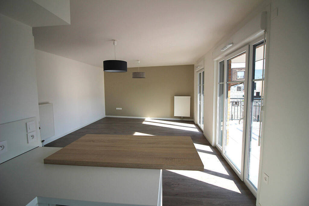 Marcq, rue de l'Abbé Bonpain, beau Type 3 récent à louer dans une résidence sécurisé .Logement avec cuisine entièrement équipée, grande terrasse exposé plein Sud, deux belles chambres, une salle de bains. Garage fermé-