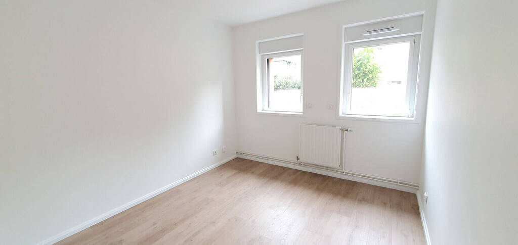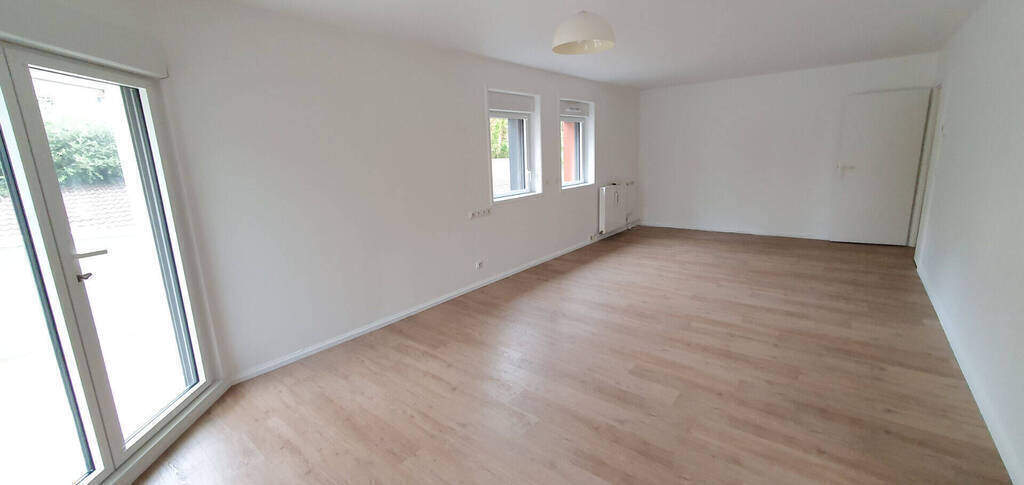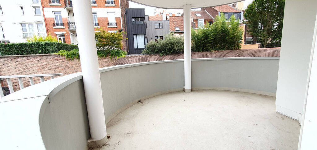La Madeleine, rue du ballon, appartement type 4 en rez de chaussée surélevé refait à neuf dans une résidence rénové (isolation refaite) offrant un hall d'entrée, un grand séjour donnant accès a un balcon, une cuisine séparée, trois chambres avec placard, une salle de bains, une salle de douche, WC séparés