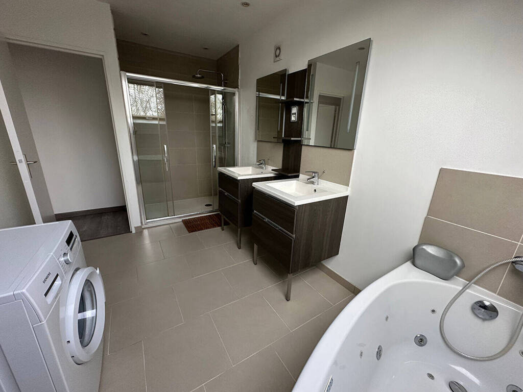 Ronchin, rue du Clos Bel Air, A louer appartement type 5 duplex de 111m² offrant au rez de chaussée un hall d'entrée, un séjour avec accès balcon, une cuisine entièrement équipée, deux chambres, une salle de douche, un WC. A l'étage : deux chambres dont une avec dressing, une salle de bains (double vasque, douche, baignoire, machine à laver)- Disponible 01 Novembre