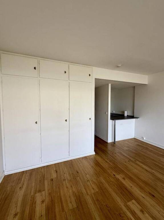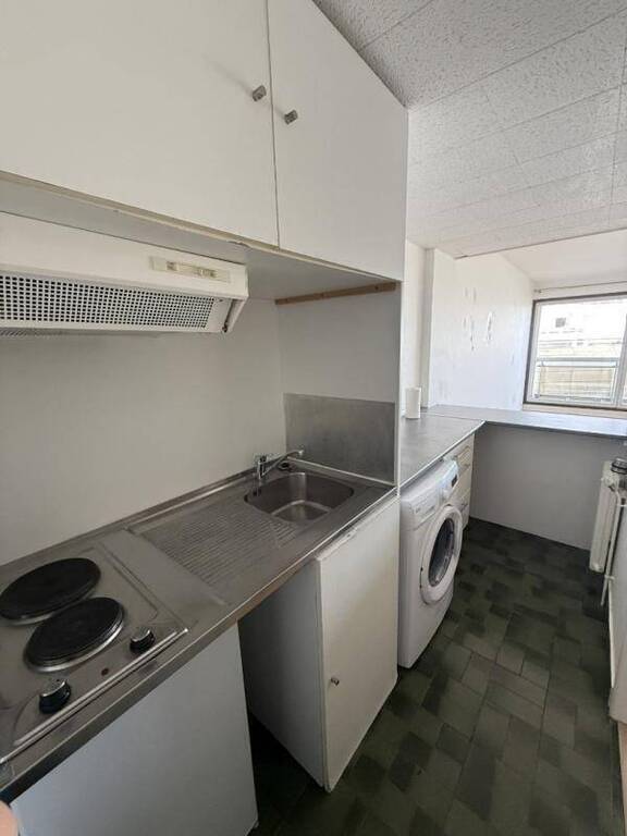 Un T1 au 2ème étage d'une résidence, comprenant un dégagement, une pièce de vie avec kitchenette, une salle d'eau, un rangement et une loggia.