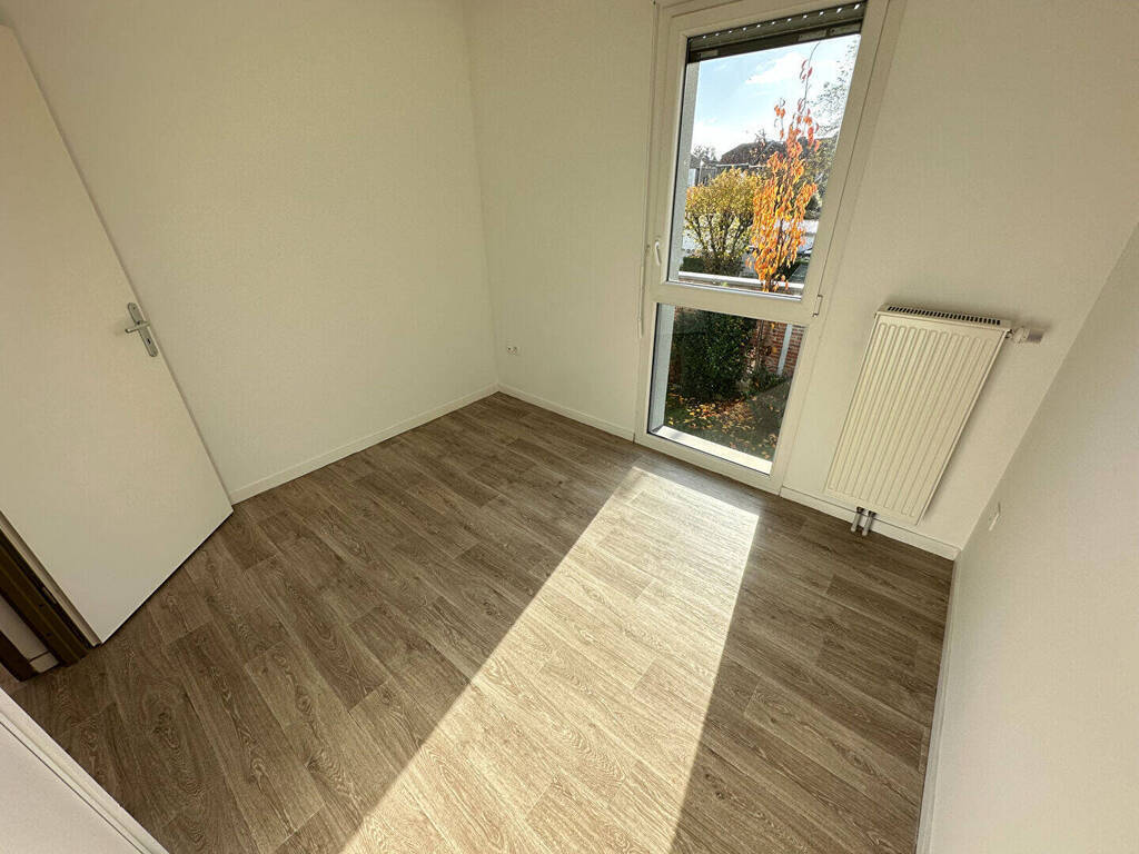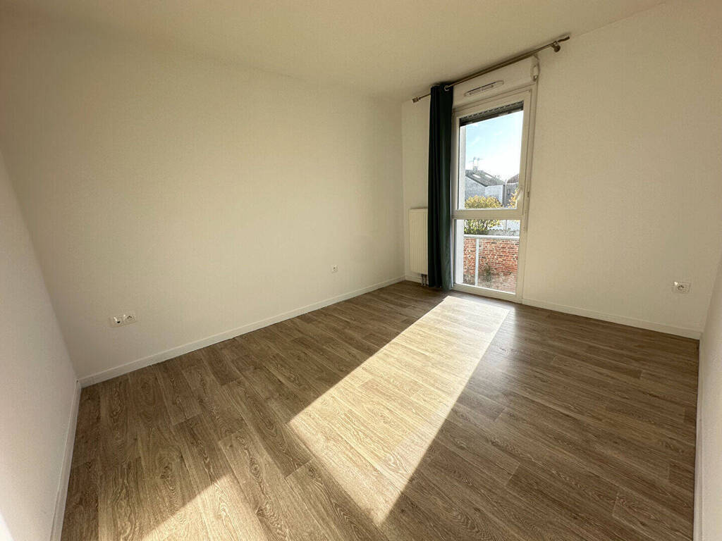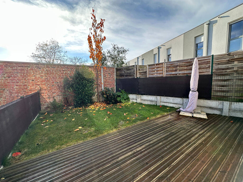 LOMME, rue Danton, maison à louer au sein d'une copropriété offrant une entrée avec cellier et WC séparés, un séjour de 24 m² avec cuisine ouverte équipée donnant sur un extérieur privatif. Au premier étage, 3 chambres et une salle de bains. Loué avec un garage.